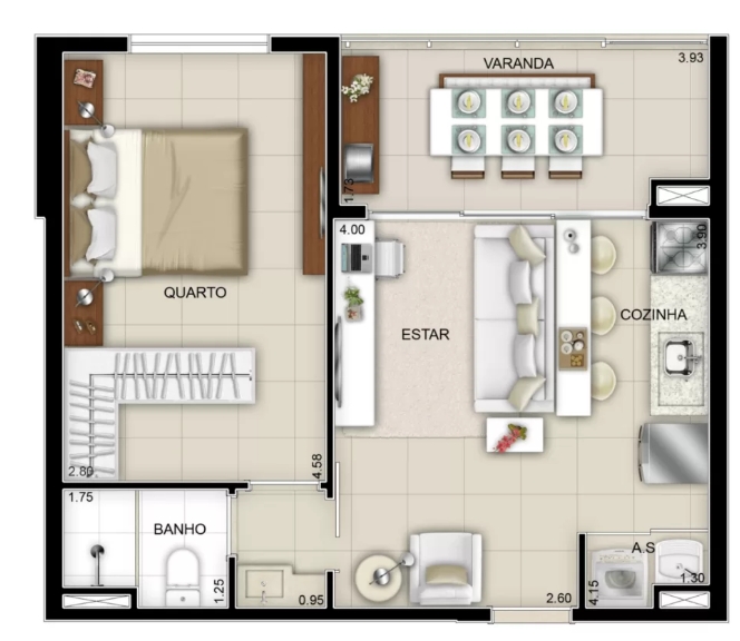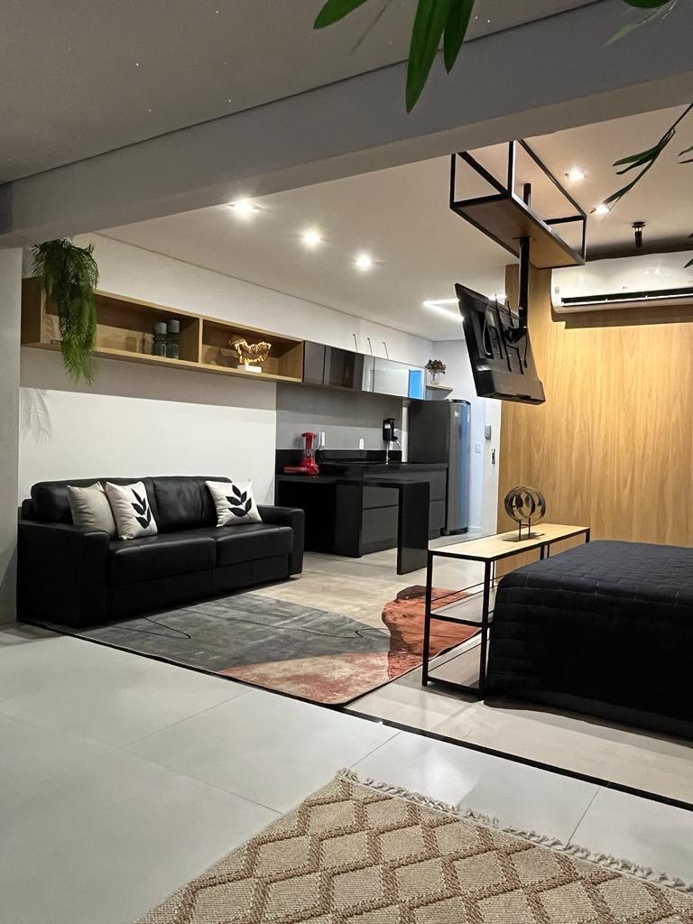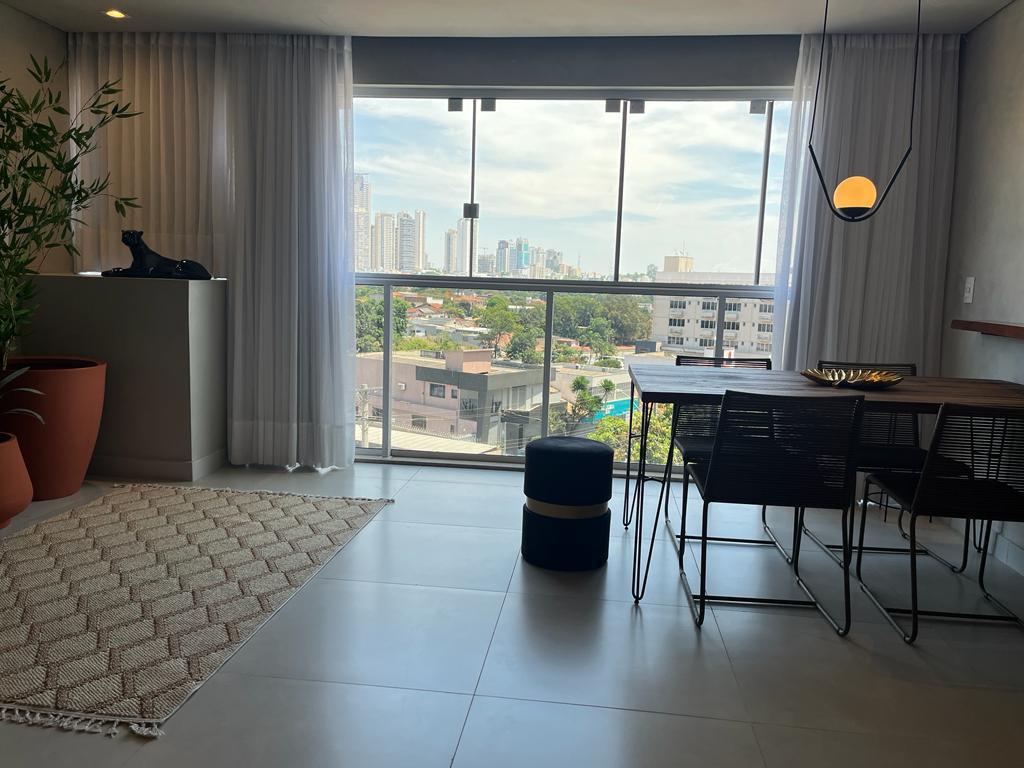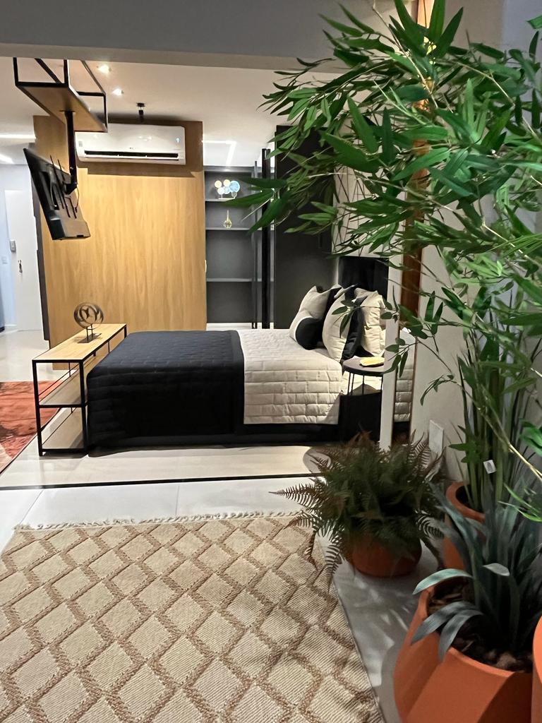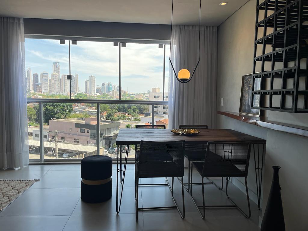 Apartamento compacto de luxo próximo ao Flamboyant. Charmoso estúdio com 1 vaga (G) de garagem. Completamente mobiliado, equipado e decorado.