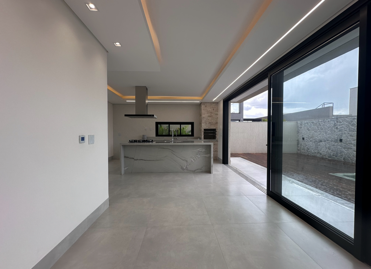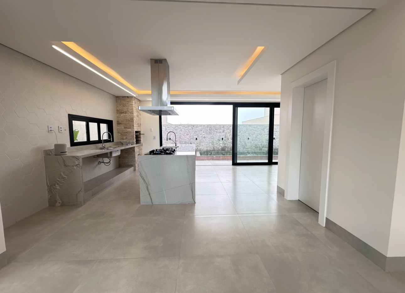 - Cozinha Gourmet: Equipada com bancada centralizada, cooktop, coifa e uma churrasqueira integrada com exaustor, ideal para os amantes da culinária.